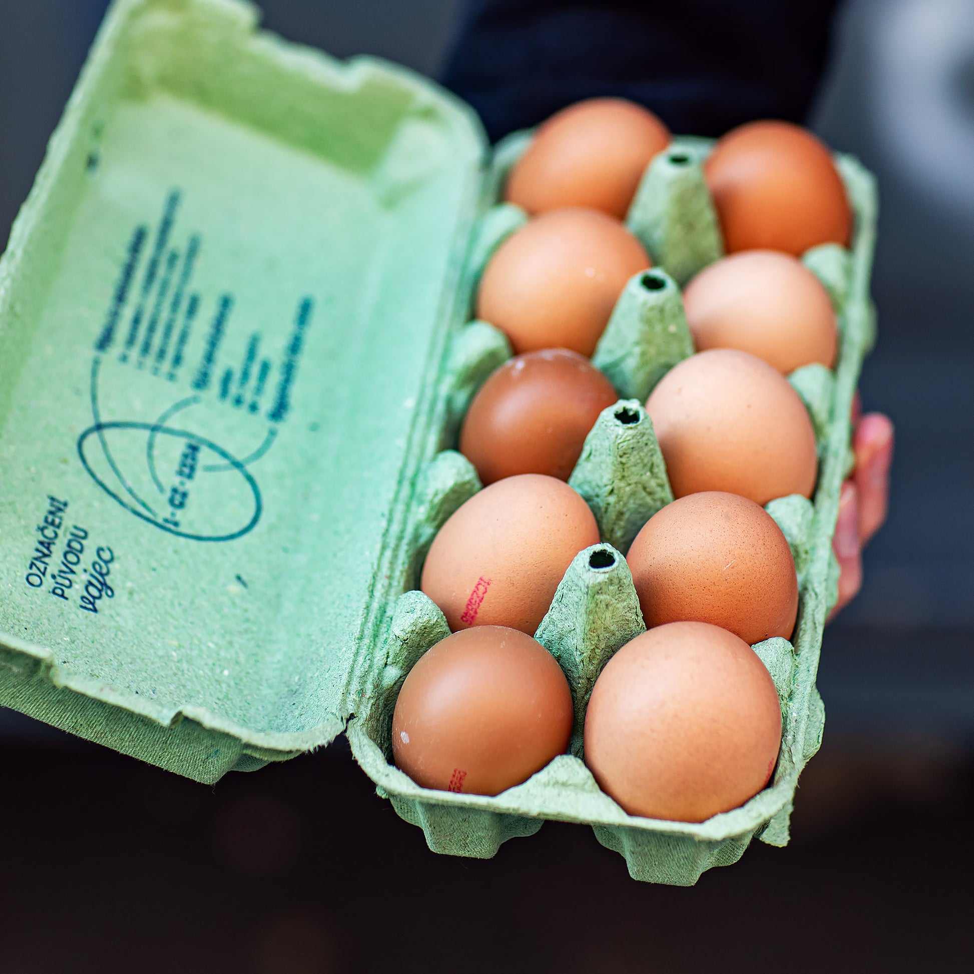 Vejce z volného farmářského chovu, netříděná (vel. S, M, L) jakostní třída A.