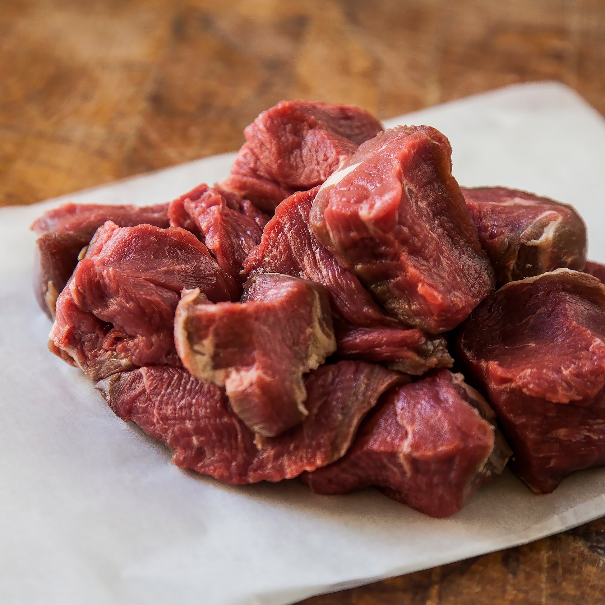 Bio hovězí kostky. Maso pochází z krásných BIO chovů ve Středočeském a Východočeském kraji. Pracujeme s farmáři, kteří mají stálá stáda a dokáží vždy dodávat vysokou kvalitu. Plemena, která máme nejraději jsou Aberdeen Angus, Charolais a Belted Galloway.