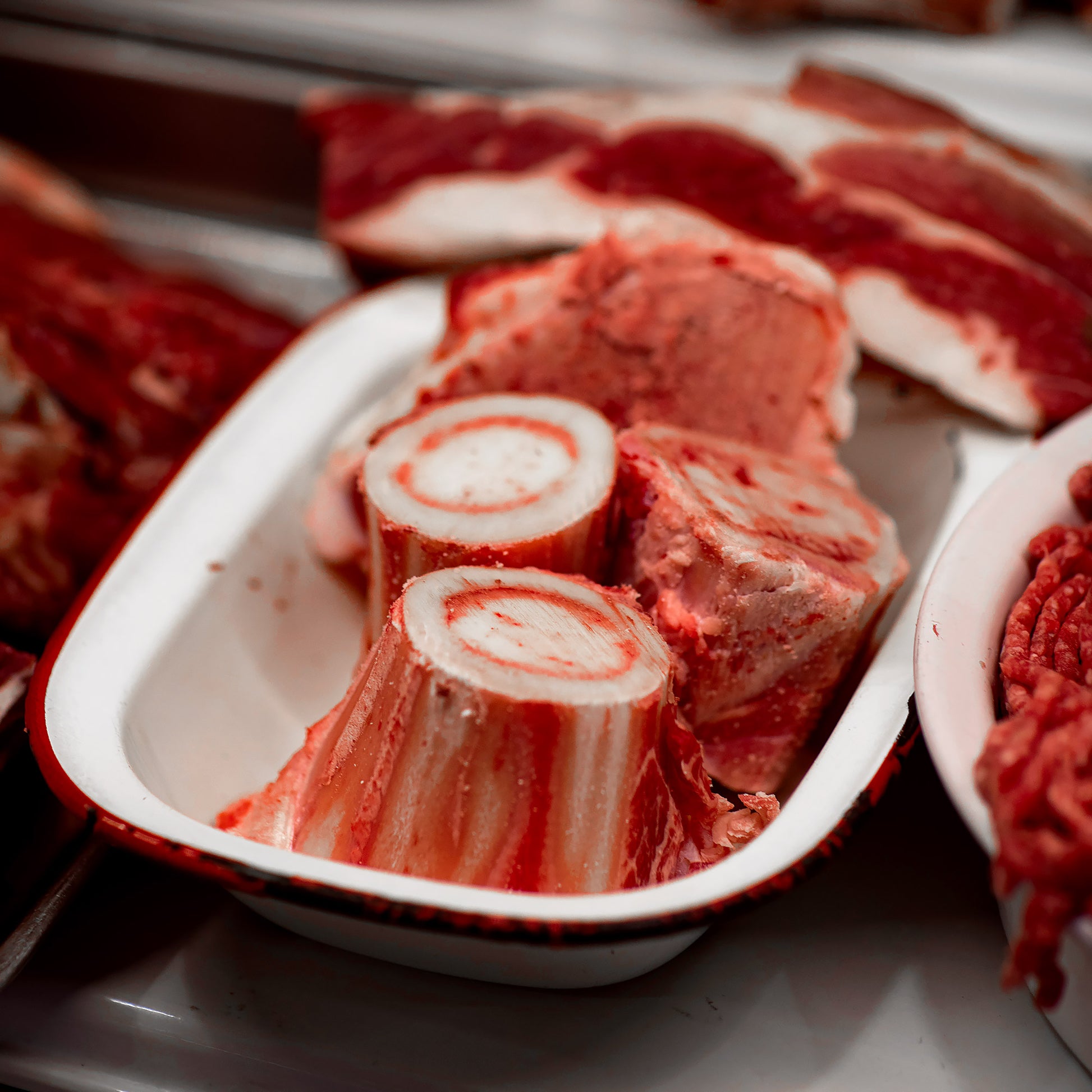Hovězí morkové kosti jsou části hovězího skeletu, které obsahují morkovou dřeň. Proto jsou bohaté na kolagen, který se při vaření přeměňuje na želatinu, což podporuje zdraví kloubů, pleti a trávení. Kosti také uvolňují minerály, jako je vápník, fosfor, hořčík a draslík, které jsou důležité pro zdraví kostí a zubů. Obsahují bílkoviny, které přispívají k regeneraci a obnově tkání, a vitamíny skupiny B (B12, niacin, riboflavin) a vitamín A, které podporují metabolismus a imunitní systém. Tento výživný vývar je ideální pro posílení těla a podporu celkového zdraví.